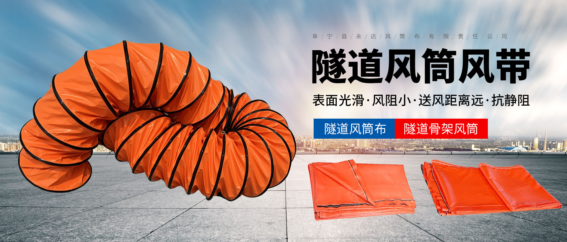 阜寧縣永達(dá)風(fēng)筒布有限責(zé)任公司位于蘇北平原,射陽(yáng)河畔,朦朧塔下的素有“風(fēng)筒之鄉(xiāng)”之美稱(chēng)的阜寧縣永興工業(yè)園區(qū),水陸交通便利。公司多年來(lái)從事生產(chǎn)煤礦礦用安全、通風(fēng)防塵產(chǎn)品,我公司(原永興塑料廠(chǎng))生產(chǎn)“永達(dá)”牌系列阻燃、抗靜電PVC塑料涂覆布,正負(fù)壓導(dǎo)風(fēng)筒,防塵隔爆水槽(袋),防塵噴頭,塑料網(wǎng)假頂,風(fēng)筒快速接頭等、壓風(fēng)自救裝置。